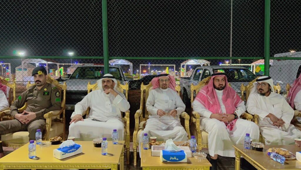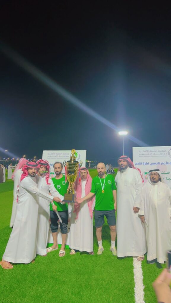 شيخ قبيلة الويبار بندر بن عبد الله بن نداء النهير ورئيس بلدية مدينة الأجفر المهندس فرحان بن سعود النومسي يتوجان الميلان بطلا لدوري تنمية الأجفر في نسخته الخامسة