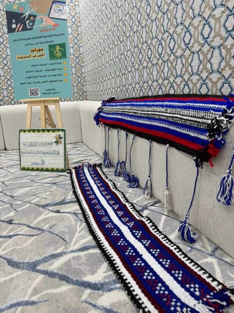 ويهدف البرنامج التدريبي الى اكساب المتدربة معرفة أساسيات حياكة السدو واتقان ابرز نقشات السدو السعودي.